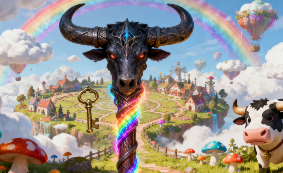 牧牛杖并非战斗武器,而是开启隐藏区域 “奇想郡”(俗称彩虹关)的专属道具。它承载着暗黑系列的奶牛关彩蛋传统,能让你进入充满童趣元素的奇幻地图,获取稀有幻化与装备奖励。
