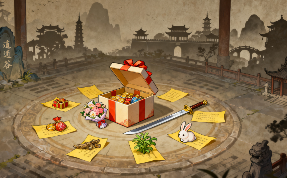 好感度是解锁游戏隐藏内容的关键,从素昧平生(0 点)到生死之交(100 点)共分六个等级,每 20 点晋升一级。送对礼物能大幅提升好感加成,避免资源浪费,让养成节奏更快。好感度达标后,不仅能触发专属支线剧情,还能获得武功秘籍、稀有道具等奖励,部分核心玩法(如六脉神剑、天书收集)更是对好感度有明确要求。