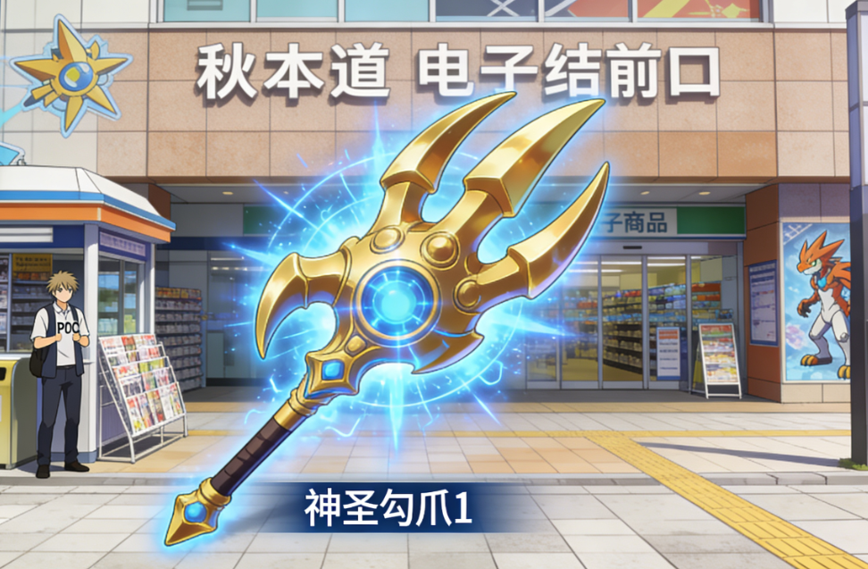 经过实测验证,神圣勾爪1最稳定的购买渠道位于秋叶原车站的电子结南口区域,该位置属于前期可探索的人类世界区域,无需解锁高难度地图,对新手极度友好。