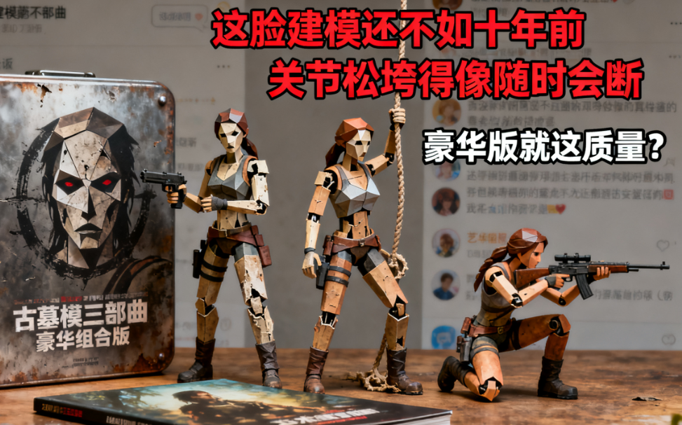 时间回到 2024 年 5 月,两家厂商共同宣布推出该豪华收藏版并开启预购,定价接近两百美元的套餐中,除了铁盒包装与艺术画册,最受期待的便是三款以经典造型为灵感的劳拉・克劳馥手办。历经多次延期后,发行方终于通过社交媒体宣布发货,并同步公布了更多实物照片,首次完整曝光了手办全貌。设计团队原本意在还原初代劳拉标志性的多边形建模风格,试图唤醒老玩家的情怀记忆,然而这一设计理念并未得到市场认可,反而成为争议的导火索。