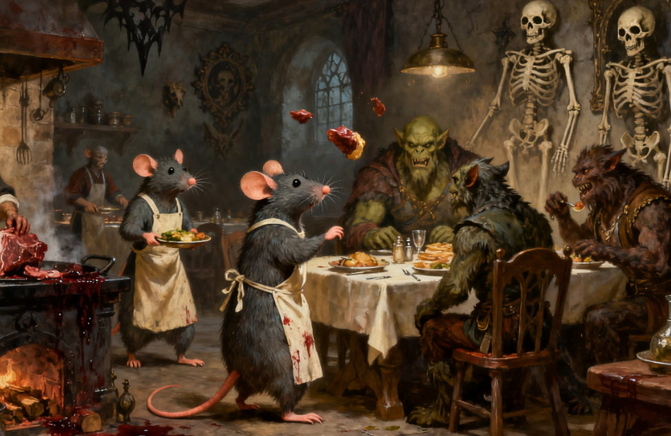 游戏中,老鼠伙伴各有所长:有的擅长高效烹饪缩短制作时间,有的精通清洁工作能快速处理污渍,合理分配分工是提升运营效率的核心。随着餐厅声望提升,还能解锁更多黑暗料理配方,除了经典的血腥肉,熔岩面包、血酿果酒等贴合种族偏好的菜品将陆续解锁,进一步吸引高人气客人。餐厅升级系统同样丰富,从简陋木屋逐步扩建为哥特式风格店面,添加骷髅挂饰、复古桌椅等装饰,既能提升客人满意度,还能解锁隐藏互动场景。