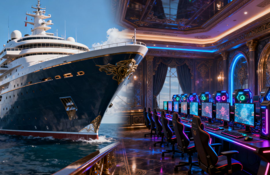 要说最戳玩家的,必须是船上专门打造的电竞房!里面整整齐齐摆了 15 台当前最顶的游戏 PC,不管是想自己宅着冲分,还是和朋友在海上开黑、办小型电竞赛都毫无压力,不愧是游戏大亨的游艇,连娱乐都精准踩在玩家心坎上。